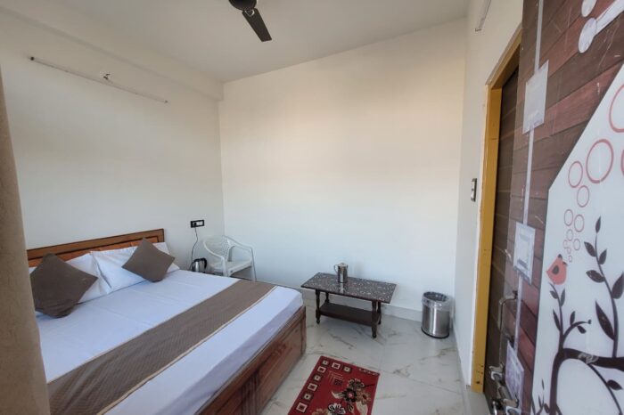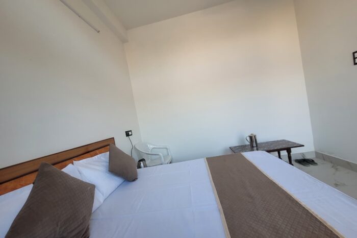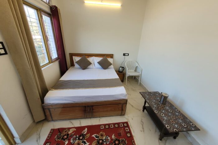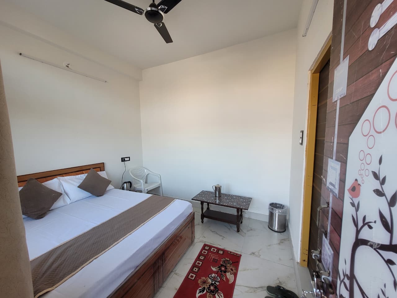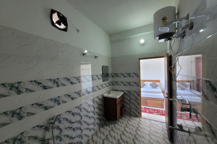 The room features a spacious double bed, elegant interiors, and a peaceful ambiance that makes you feel at home from the moment you arrive. The attached private washroom is clean, hygienic, and equipped with modern fittings, ensuring complete comfort and convenience throughout your stay.