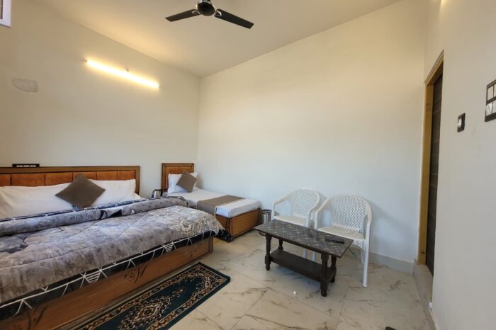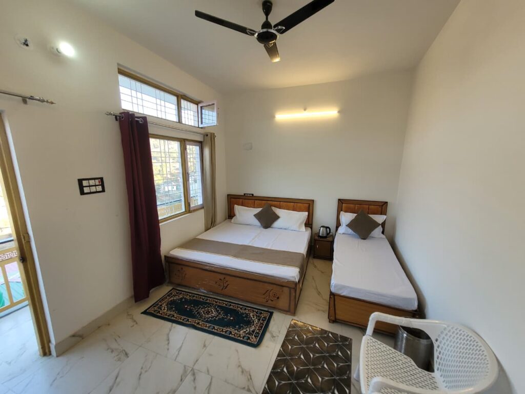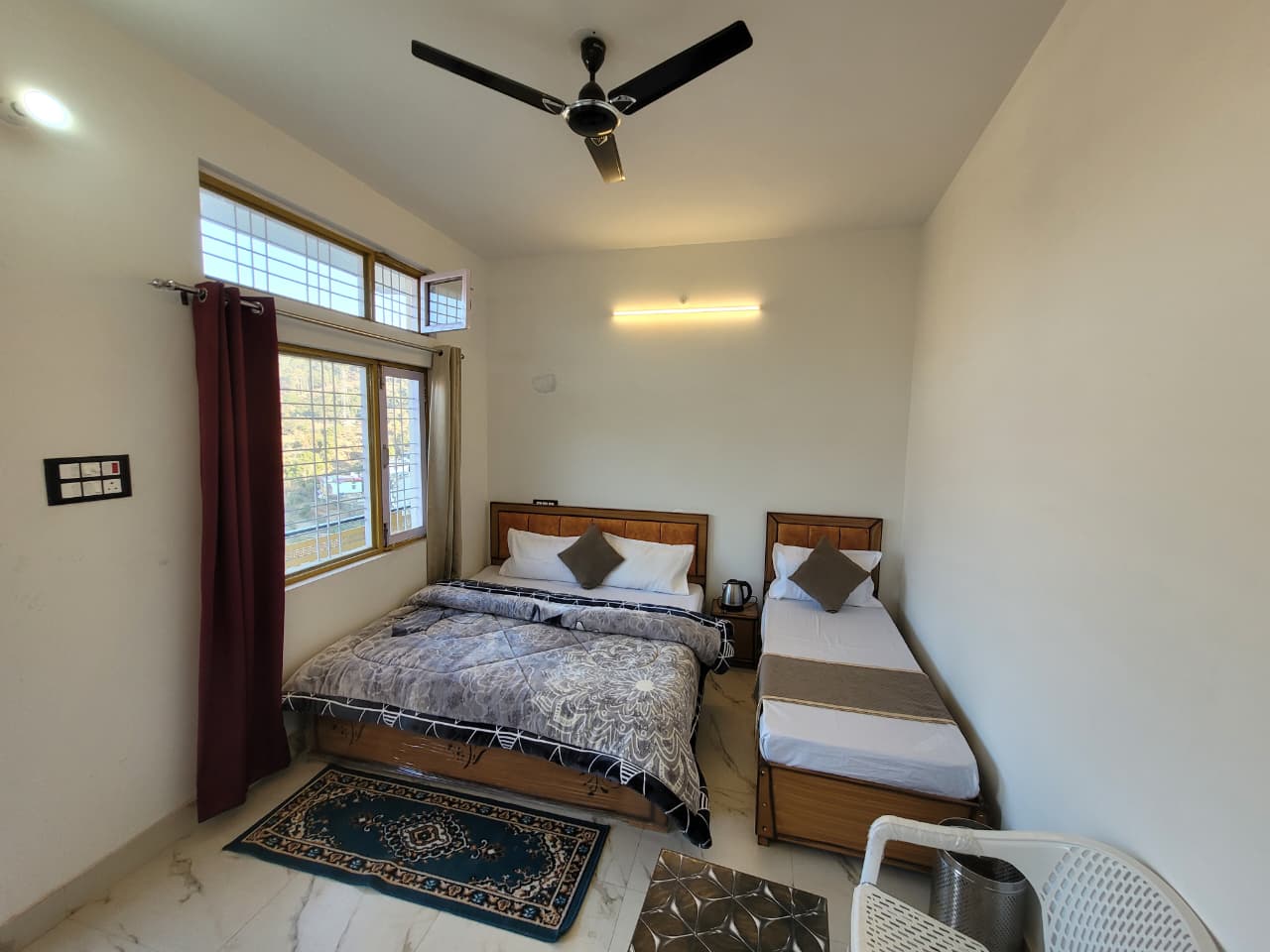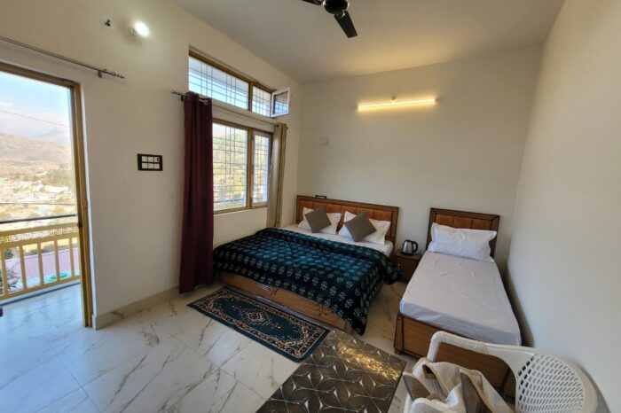 Perfect for families and small groups, our Triple Sharing Room at Hotel Himalayan Peak is designed to offer spacious comfort, warmth, and convenience in a peaceful mountain setting. With well-arranged bedding for three guests, the room provides a cozy and welcoming environment for a relaxing stay.